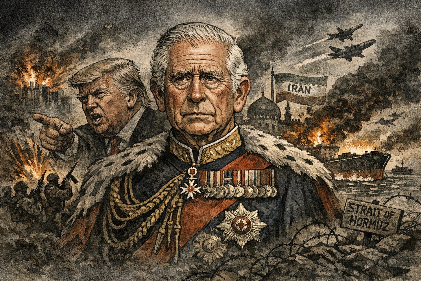He is a constitutional monarch. That is not a decorative fact. It is the central, governing fact of everything he does and does not do. He does not have foreign policy positions. He does not have opinions about wars, at least not ones that can be uttered aloud. He holds, in the ancient and largely theoretical language of the prerogative, the power to declare war, and exercises it precisely never. That is the arrangement. That is the deal. It has worked, more or less, for several centuries.